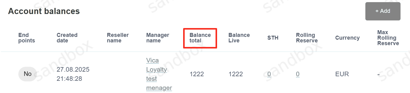 Example: For balance 191 Sale and Payout operations are overrode, that means for this balance main configuration doesn’t affect.